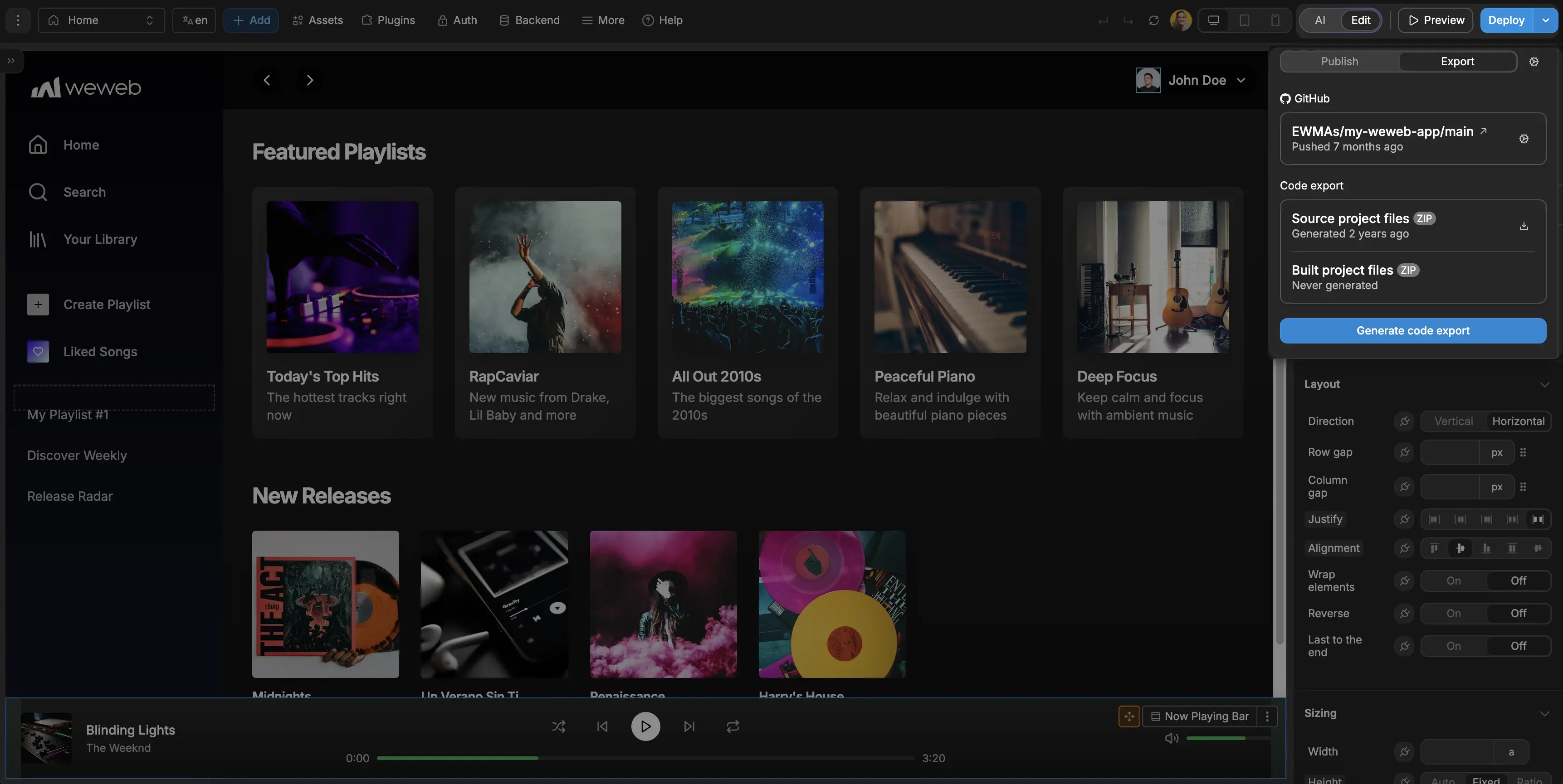 Generate web-apps in minutes with AI, customize them fully in a no-code drag & drop editor.