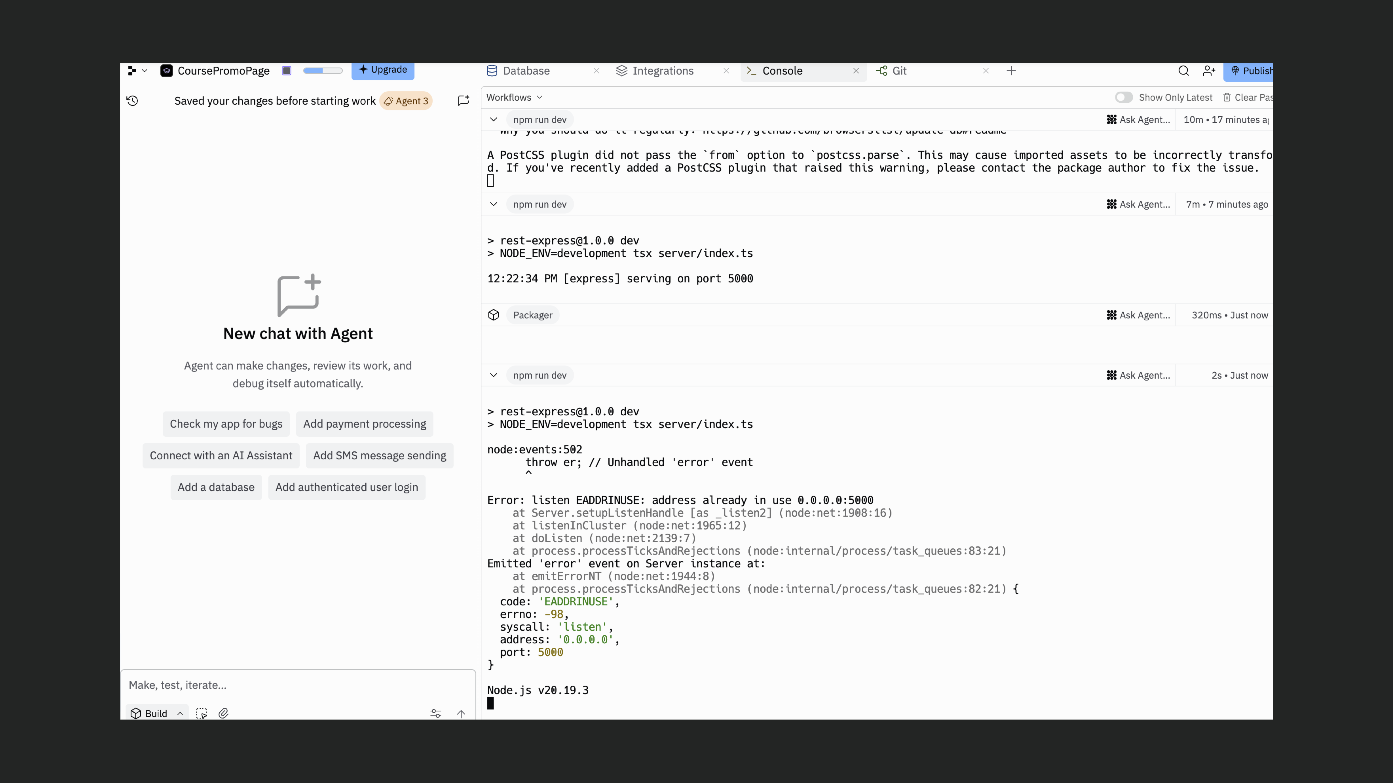 The AI agent and assistant offer real-time code suggestions, debugging, and edits directly within the platform.