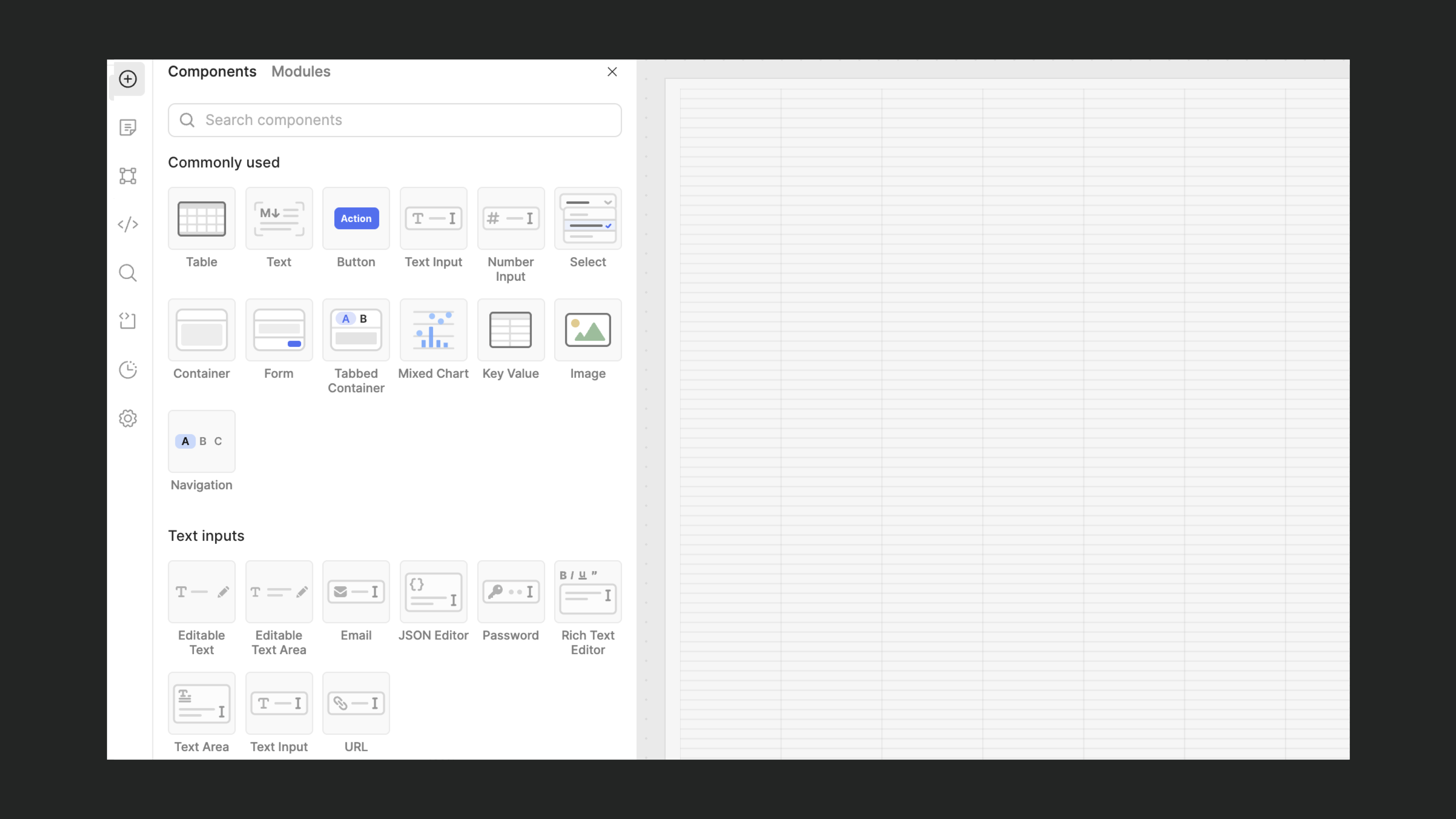 Retool provides a fast, opinionated drag-and-drop experience that makes it quick to assemble internal tools: