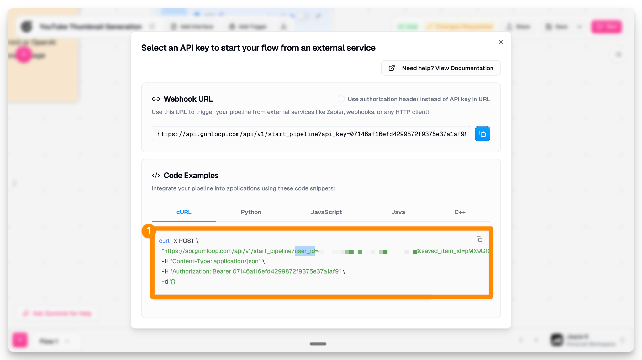 When copying your Webhook URL from Gumloop, make sure to toggle on the authorization headers:
