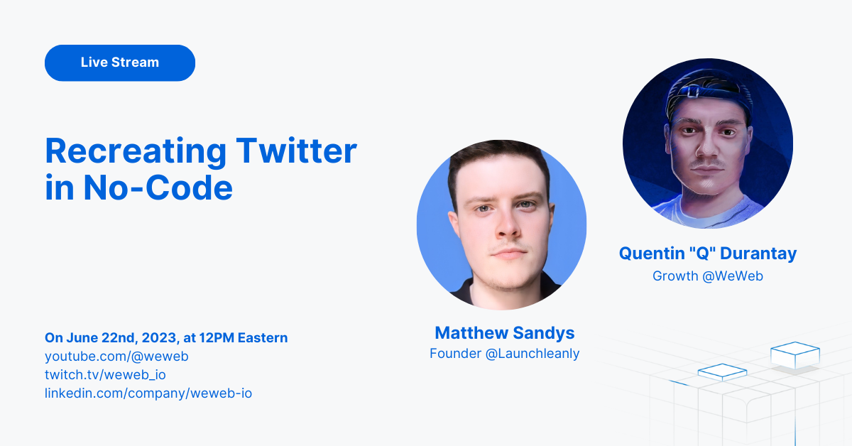 Matthew (founder @Launchleanly) will show us how he recreated Twitter in WeWeb (his app is available here for you to see: https://app.launchleanly.com/).