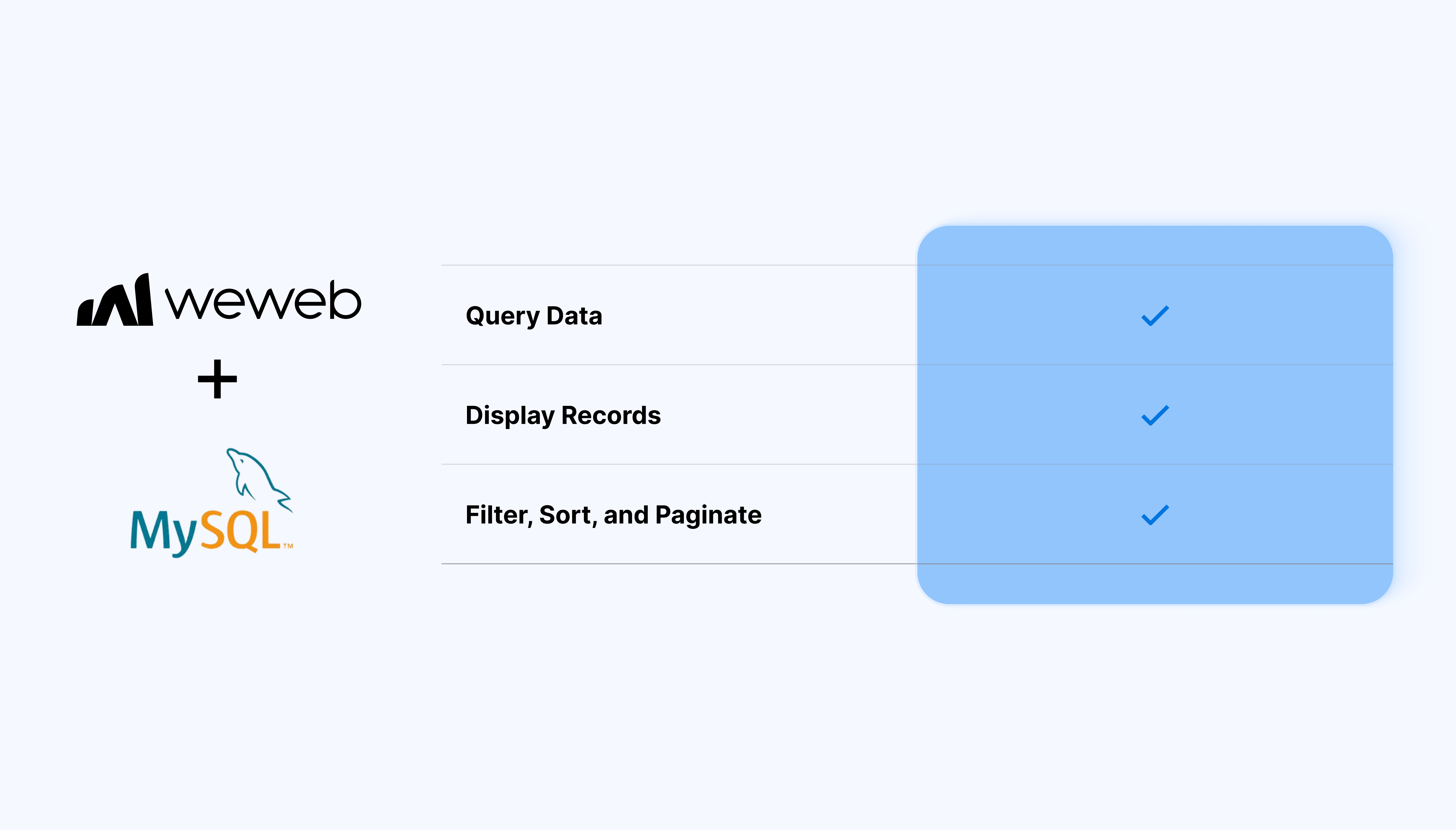 WeWeb + MySQL gives you a clean separation between your UI and your data, so you can move fast without compromising structure or security: