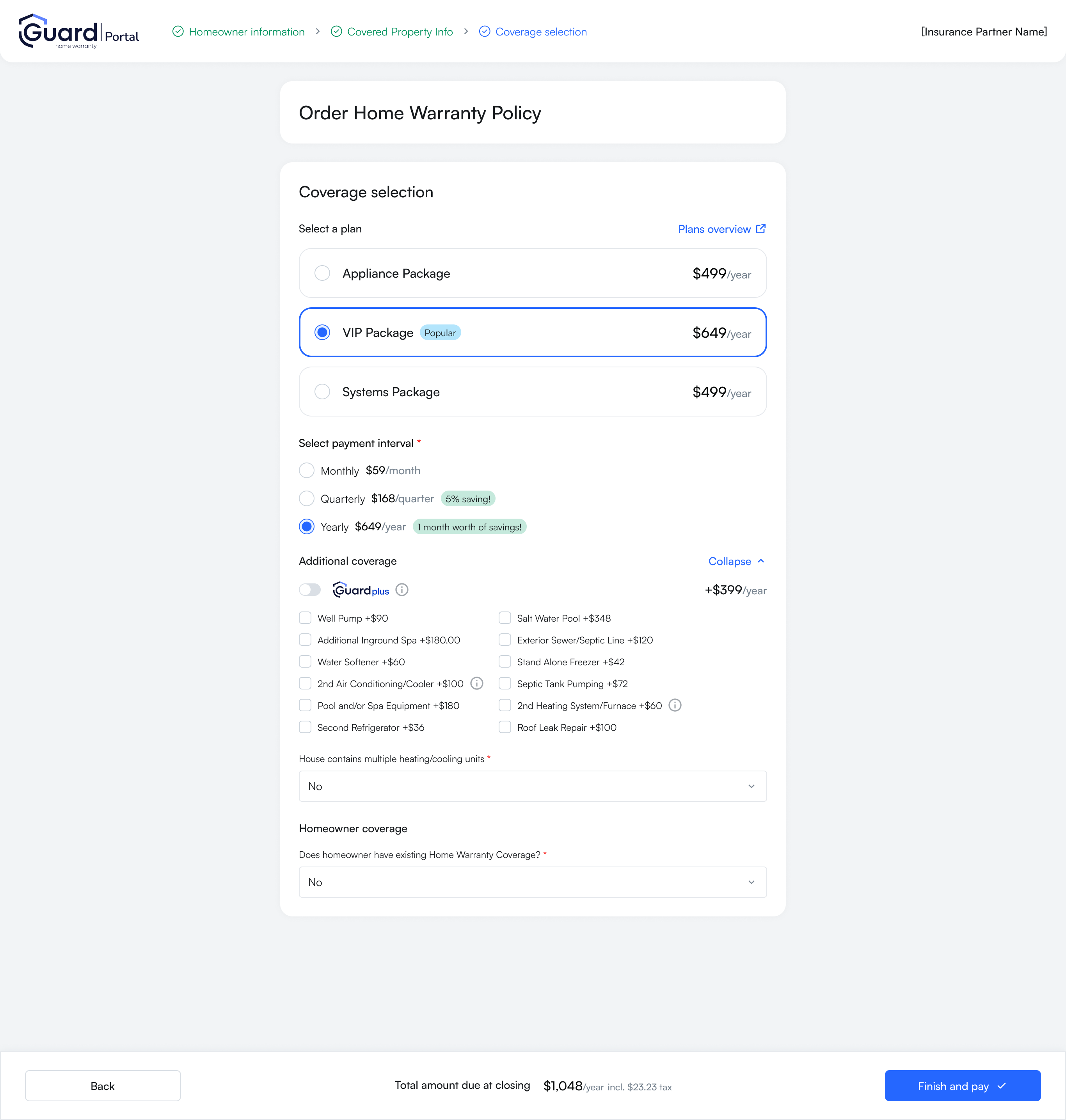 Partner flows (insurance & inspectors): Join the partner network, refer homeowners, and manage deals.