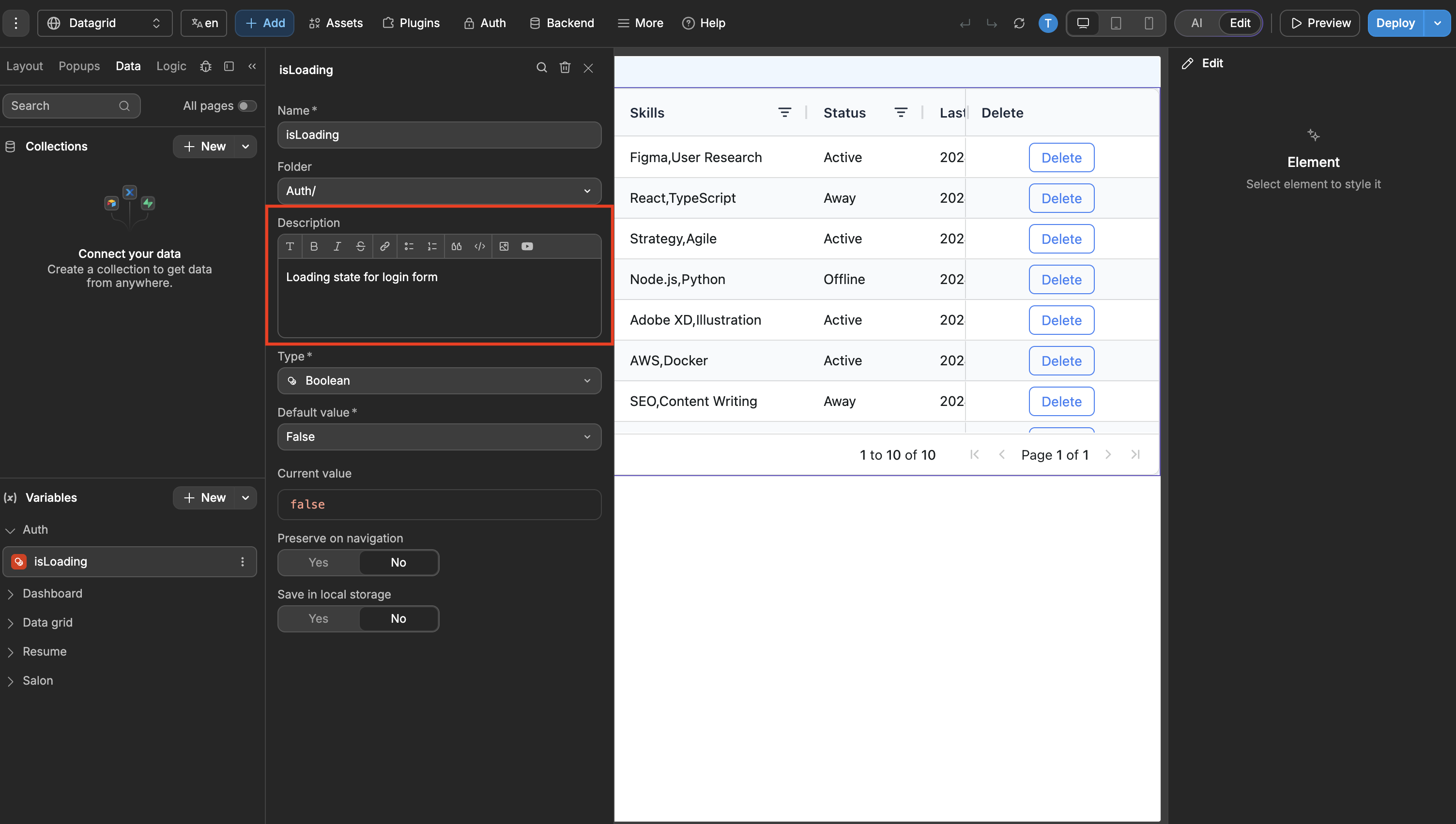 Add description boxes for variables, workflows, components, popups, and collections to reduce the learning curve and make it easier for your client to take over a project.